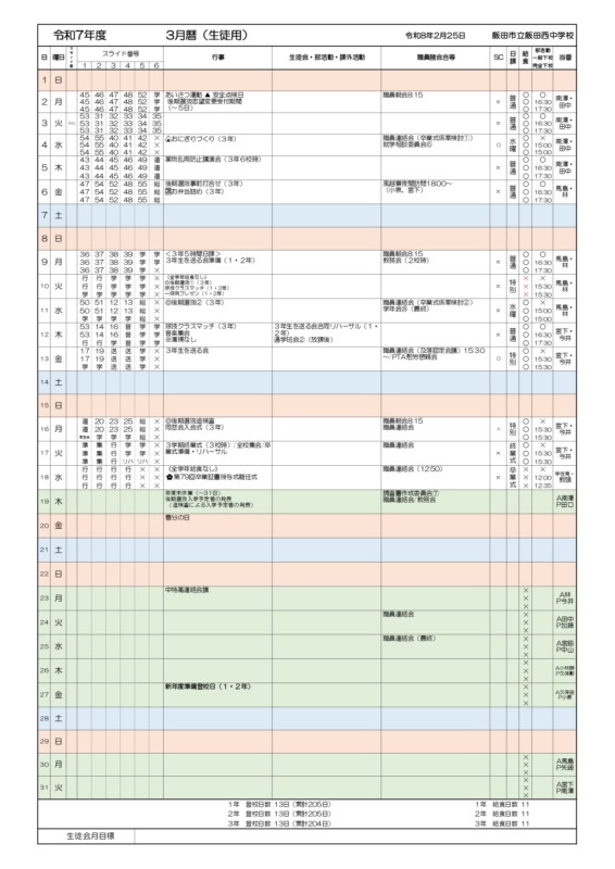 3月 予定表