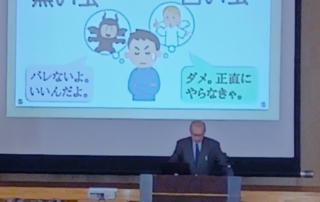 5月18日(木)6校時に、第1回校長講話がありました。全校が体育館に集まって行うのは久しぶりで、全校生徒が体育館に無言で入場し、静粛な雰囲気が漂う中で講話が行われました。 小林校長先生からは「黒い虫と ... 詳しく読む