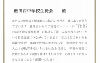 昨日15日(水)昼休みに、ユネスコ協会代表の牧原様にご来校いただき、生徒会正副会長から「アルミ缶回収から得た収益金」を寄付しました。 そして、牧原代表様から「世界の子ども達の識字率を高める活動に役立て ... 詳しく読む